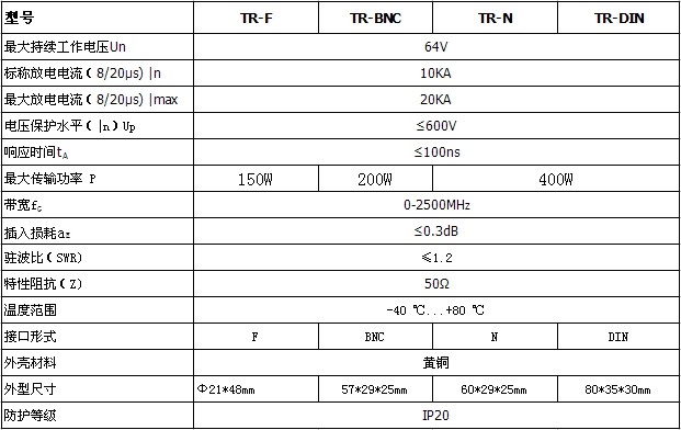 TR系列產(chǎn)品開關(guān)型天饋電涌保護(hù)器用以防止因饋線感應(yīng)雷擊過(guò)電壓而對(duì)天線及收發(fā)設(shè)備造成的損害,適用于無(wú)線通信,移動(dòng)基站,微波通信,廣播電視等同軸天饋系統(tǒng)信號(hào)防雷浪涌保護(hù),安裝于防雷分區(qū)LPZ0A-1及后續(xù)分區(qū)