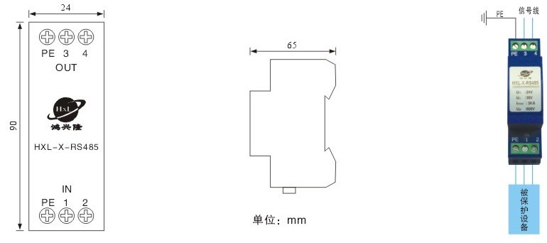 1:本產(chǎn)品安裝于信號通道和被保護設備之間,輸出端與被保護設備相連。